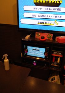 モニター付近は「除菌対策しています」アピールがつまっていました。